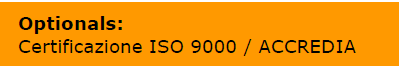 | Alimentazione | Optionals: Certificazione ISO 9000 / ACCREDIA Batteria 3,7 V ricaricabile | |