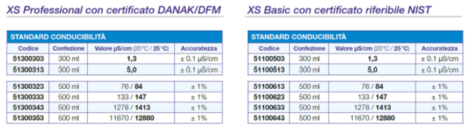 | Standard riconosciuti COND | 1413 µS / 12.88 mS |