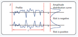 Rsk - Asimmetria - è la misura di simmetria del profilo sulla linea media. Si distinguerà tra i profili asimmetrici di Ra o Rq.