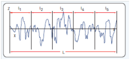 L1 - L5 sono le lunghezze di campionamento consecutive ed uguali (L la lunghezza di campionamento corrispondente alla lunghezza del cut-off λc). La lunghezza di valutazione 'L' è definita come la lunghezza del profilo utilizzato per valutare i parametri di rugosità superficiale (di solito contiene varie lunghezze di campionamento; standard sono cinque lunghezze di campionamento consecutive). Ra è il parametro internazionale di rugosità più usato. È la media aritmetica degli scostamenti assoluti del profilo di rugosità dalla linea mediana.Rq è il valore efficace (RMS root-mean-square) degli scostamenti del profilo dalla linea media.
