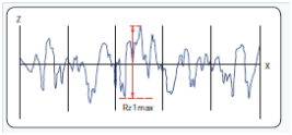 Rz1max è il più grande picco / valle in qualsiasi lunghezza di campionamento all'interno della lunghezza di valutazione. Rv, Rp, Rt, Pv, Pp, Pt,