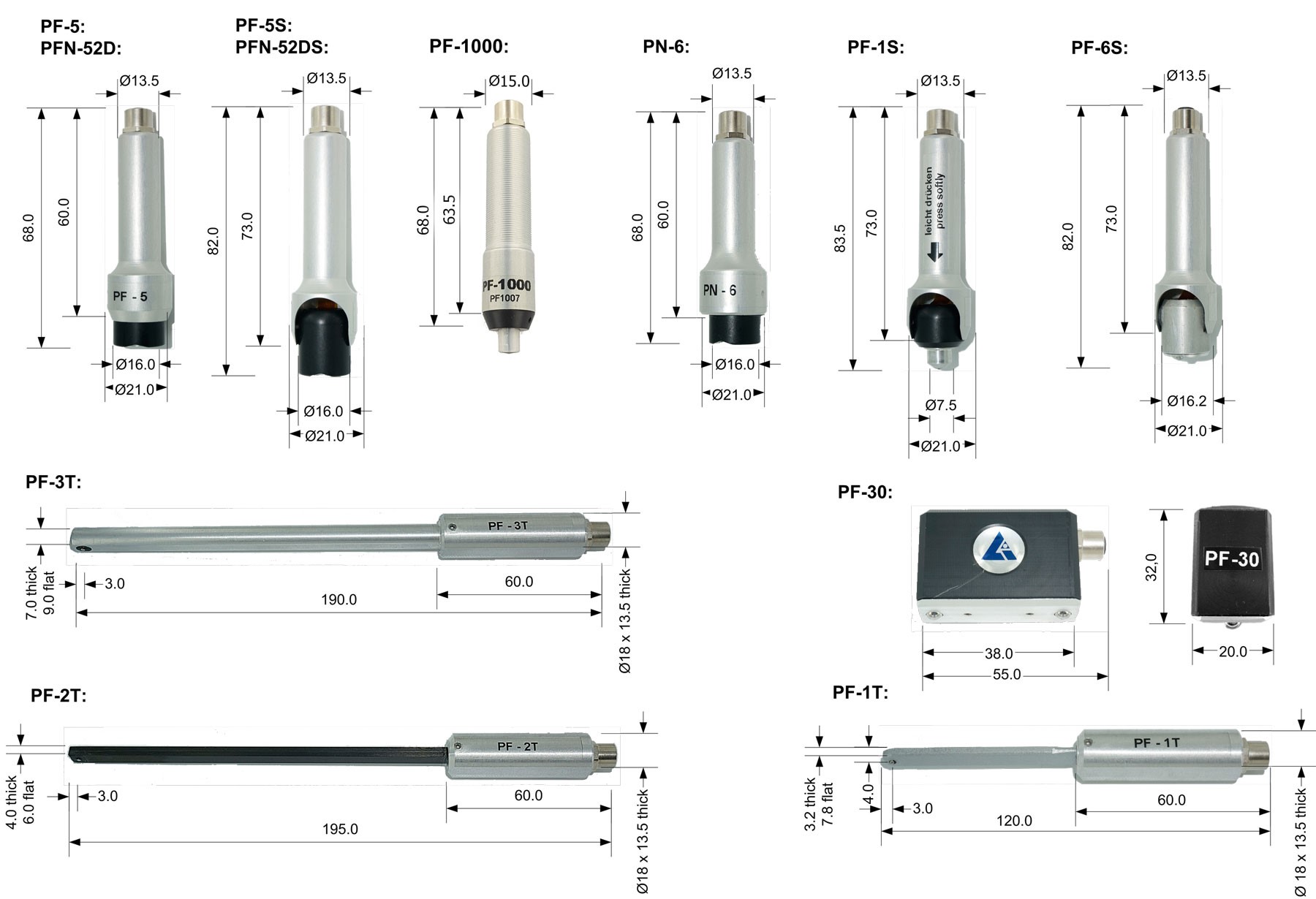 La vasta gamma di sonde intercambiabili consente di misurare particolari di ogni tipo, interni di tubi, superfici curve o di piccole dimensioni, misure fino a 5 mm, con l’acquisto di un solo strumento.
