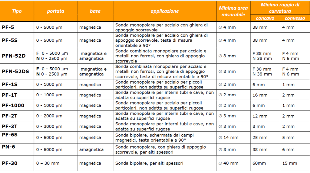 Misurano su basi magnetiche (FE) tipo acciaio, ferro, ghisa, ecc., rivestimenti tipo: vernice, resine, riporti galvanici, cromo, cadmio, zinco, alluminio, acciaio inox, plastica, gomma, ceramiche ecc..